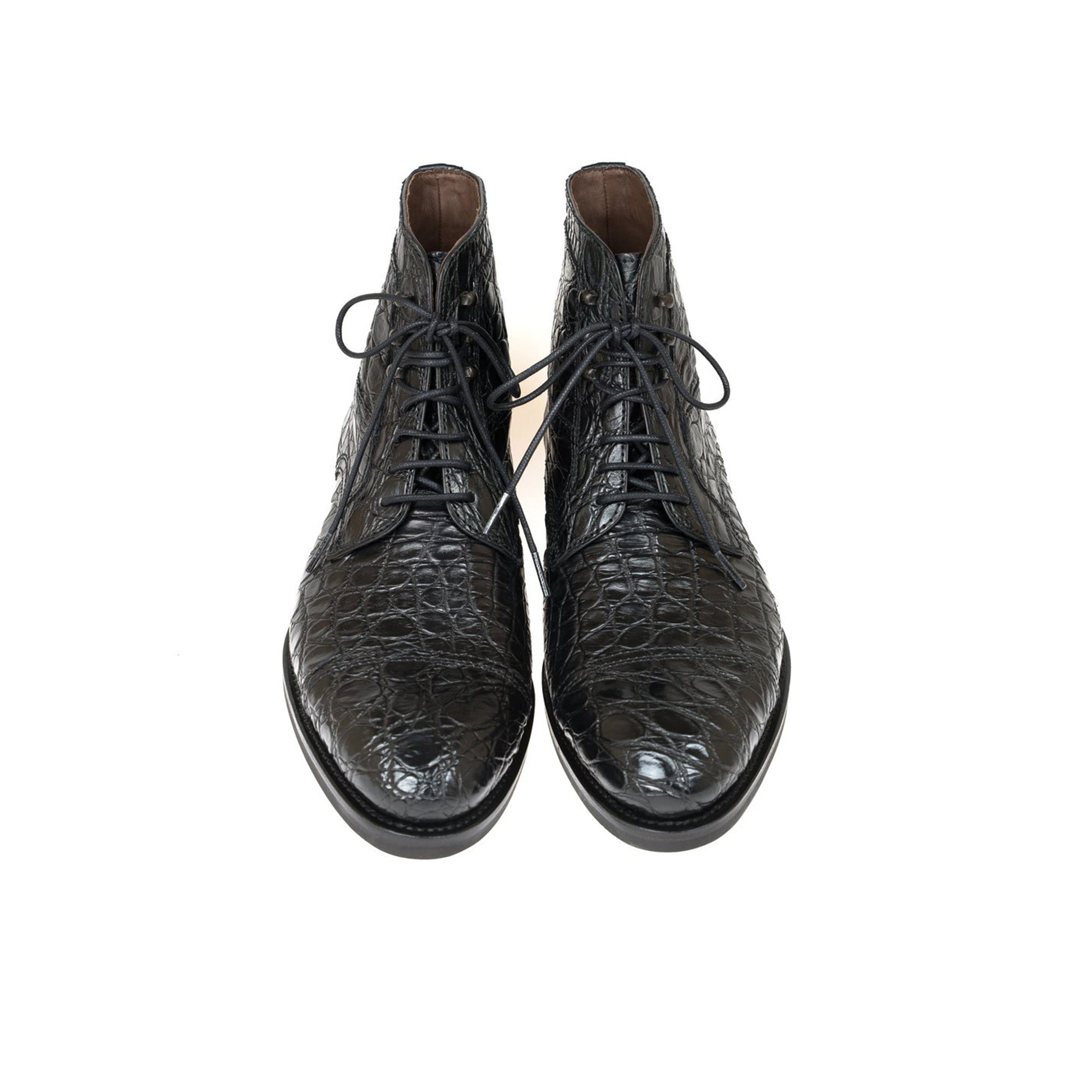 We love the simplicity of a lace-up chukka boot and it doesn’t get much better than this luxurious Black alligator design!