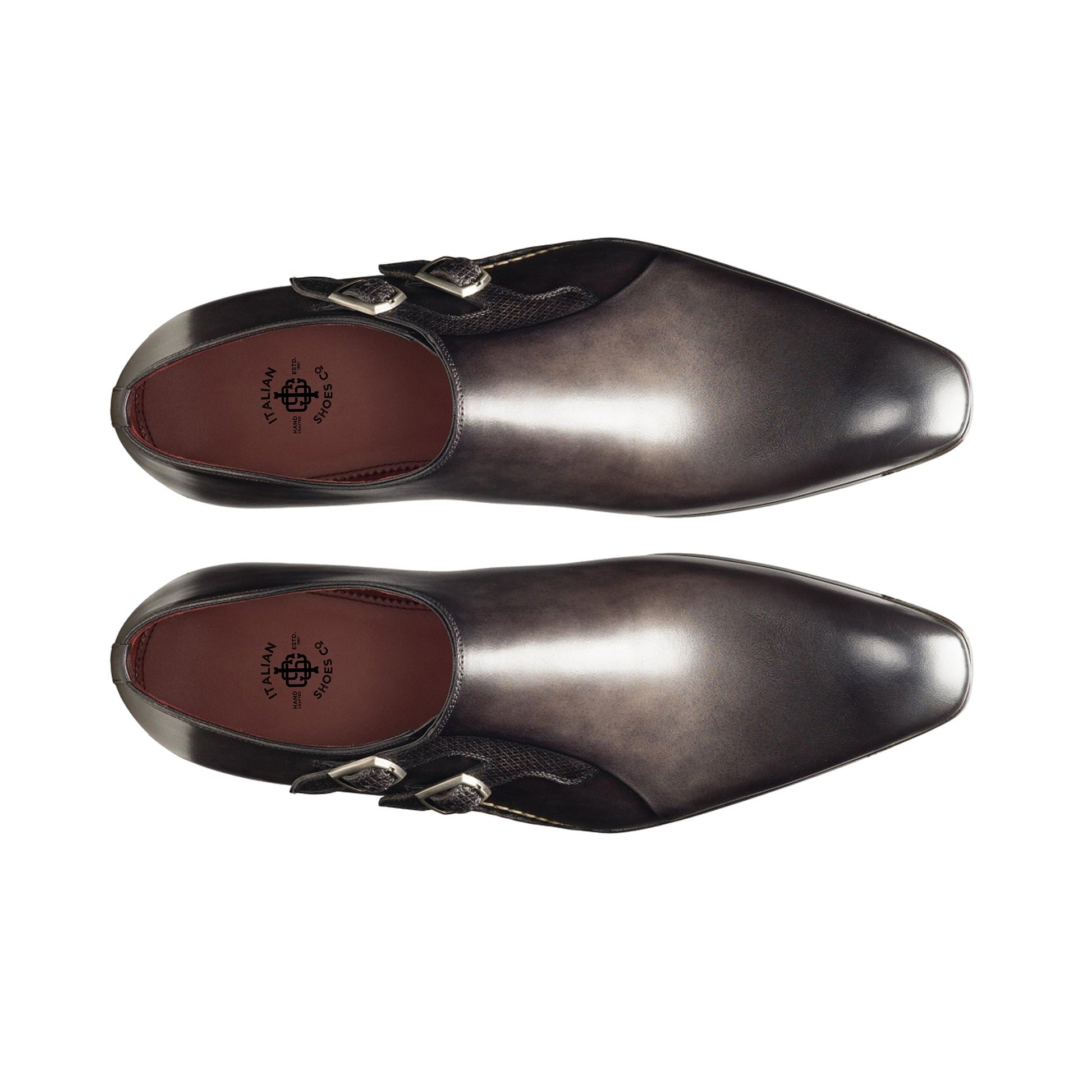 The Javier is a mixed media double-buckle monk strap with a traditional plain toe design.