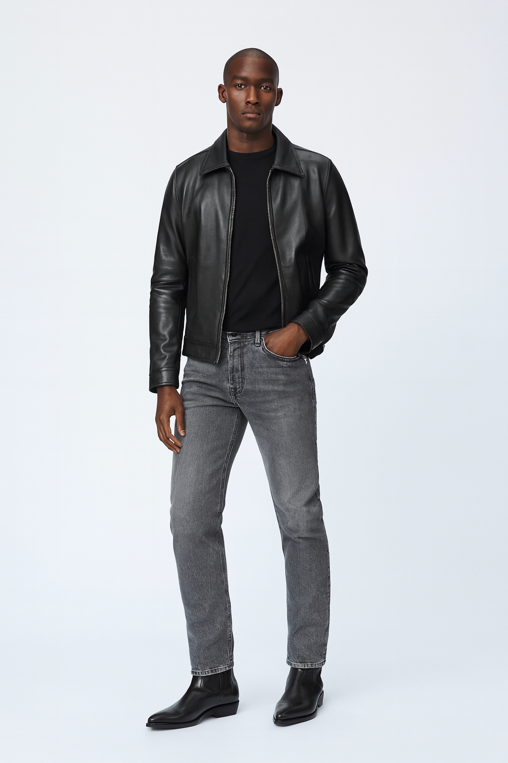 Side Zip Western Boot - Black Hand-Dyed Leather